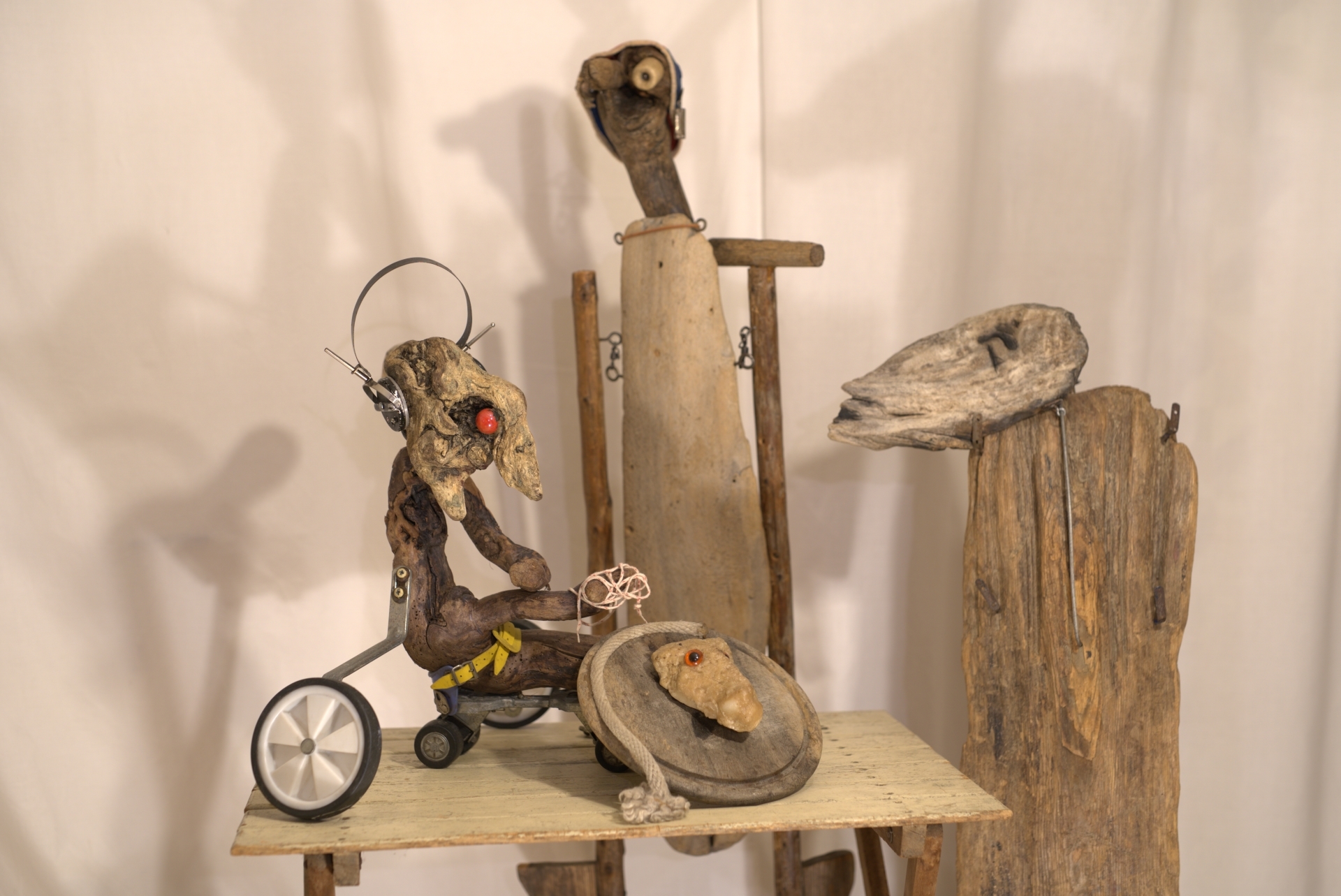 Rockperformance mit Holzfiguren